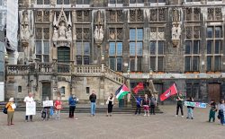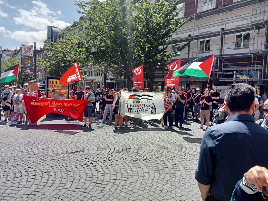 Der Aufruf zu dieser Aktionen leutete: „Demonstration für Frieden in und um den Gaza Streifen und gegen eine weitere Eskalation der Lage im nahen Osten“. Hier ein Zitat aus der Pressemitteilung: „Die militärische Unterstützung der israelischen Regierung muss sofort beendet werden. Wir fordern die Bundesregierung auf, die richtigen Lehren aus der deutschen Geschichte zu ziehen und sich weltweit gegen Rassismus Antisemitismus in jede Form der Unterdrückung einzusetzen.“