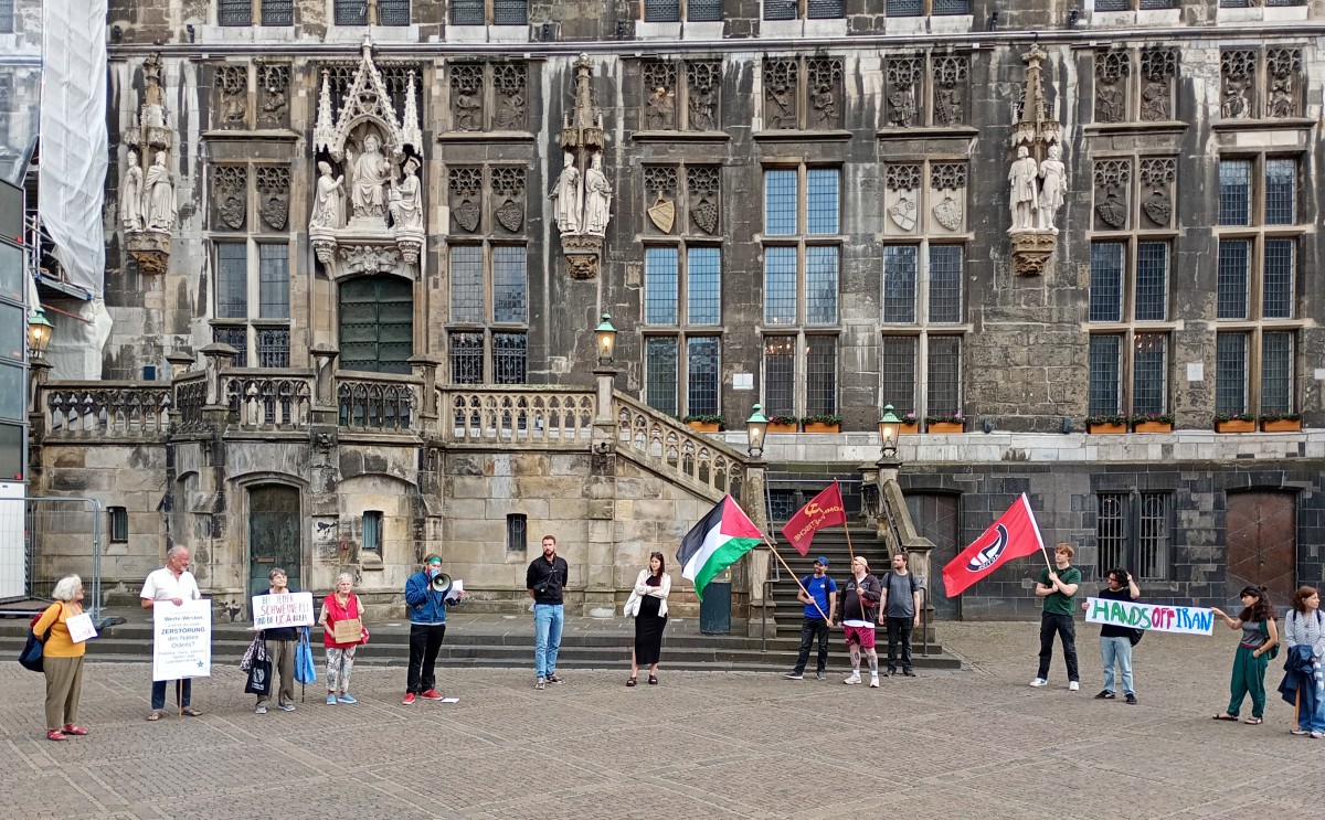 Diese Veranstaltung wurde organisiert von der ‚Aachener Linkspartei‘, den ‚Students for Palestine‘ und dem SDS. Viele weitere (linke) Organisationen hatten sich angeschlossen. Ingesamt haben sich etwa 250 Menschen an der Veranstaltung beteiligt.
