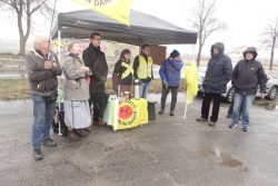 Ursprünglich plante das Aktionsbündnis „Stop Westcastor“ die Mahnwache auf dem nahegelegenen Rasthof Ruraue. Die Polizei verbot dies jedoch. Sie berief sich dabei auf das neue Versammlungsgesetz in NRW, das Versammlungen auf Autobahnen untersagt. Laut Polizei gehört der Rasthof zur Autobahn.