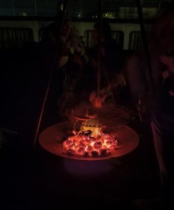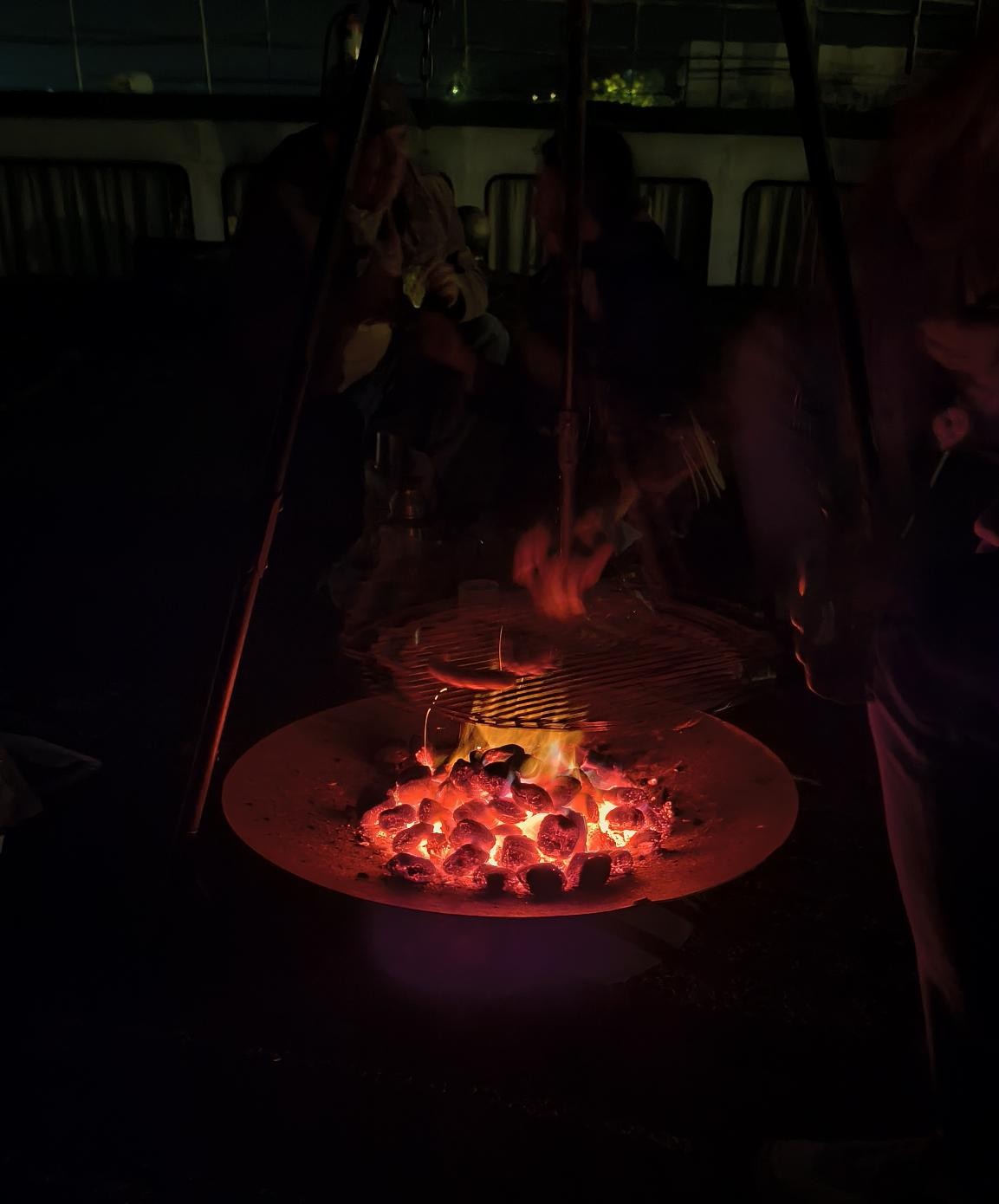 Dafür gab an diesem Abend auch keine Drohnen und keine Polizei wie sonst üblich. Stattdessen gab es einen wunderbaren Halbmond, einen Grill (auch zum Wärmen) mit gebratenen Würstchen, Steak und Tofu und dazu kalte Getränke. Es gab die VOR-letzte Flasche Sekt unserer Spezialmarke „Grand Cuve Fissure“ (siehe Artikel von 2015) zum Anstoßen auf das Ende von T-1. Es gab Fotos … es wurde ein schöner Abend, an den sich die Beteiligten noch lange erinnern werden.